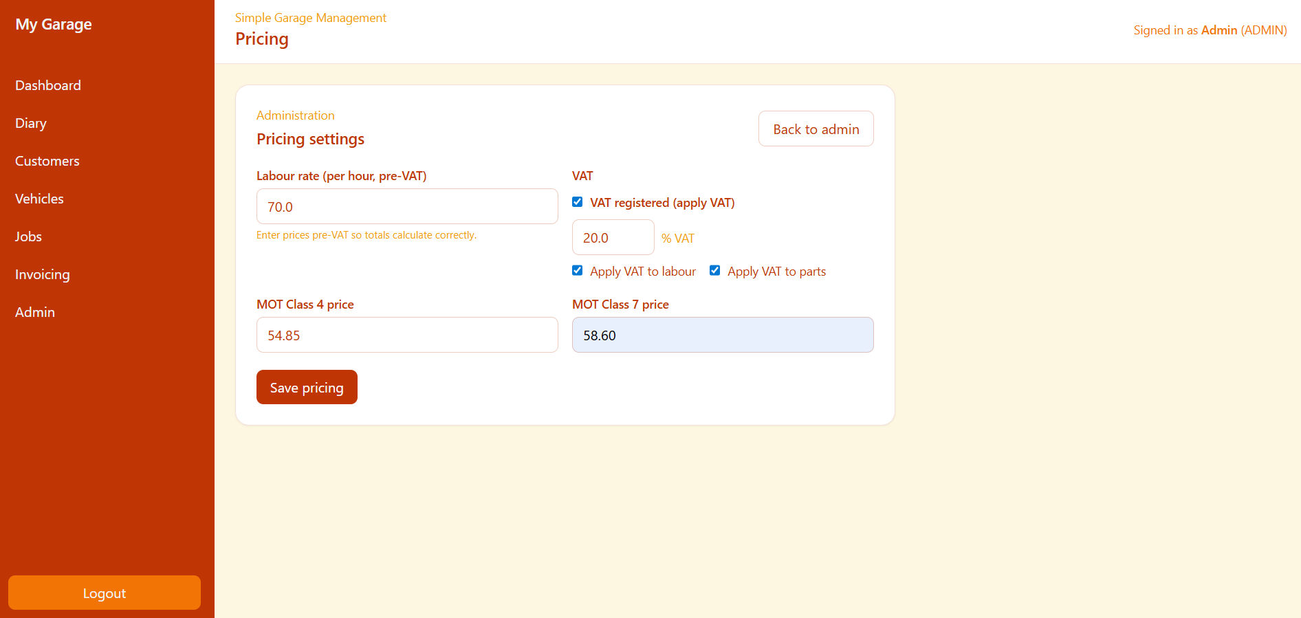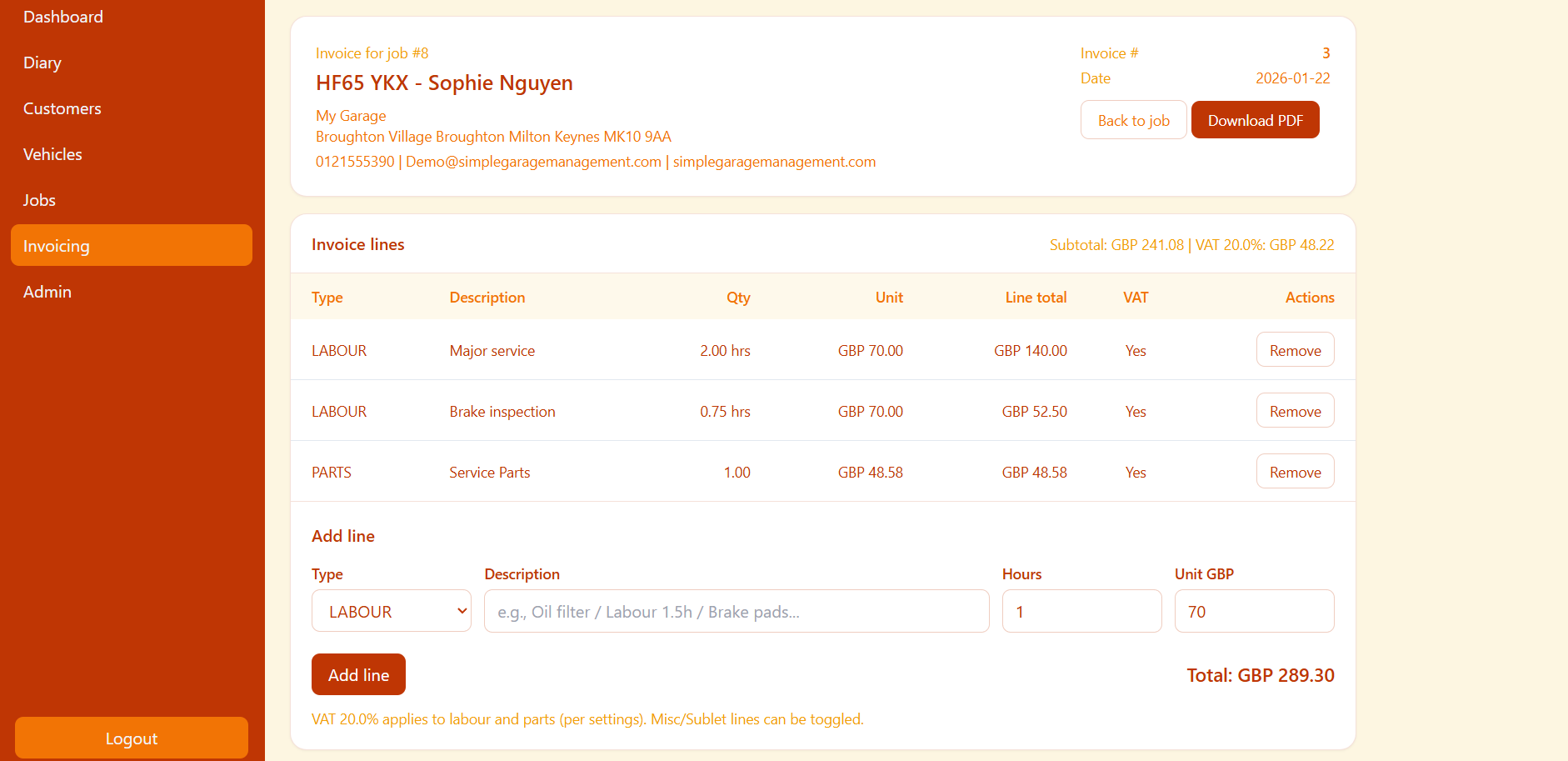 Leave notes per labour line so advisors stay informed.