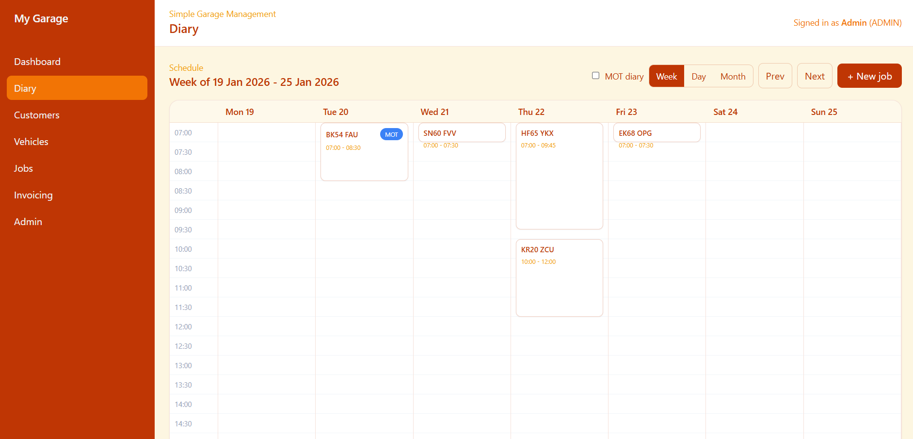 Separate MOT slots to avoid workshop clashes.