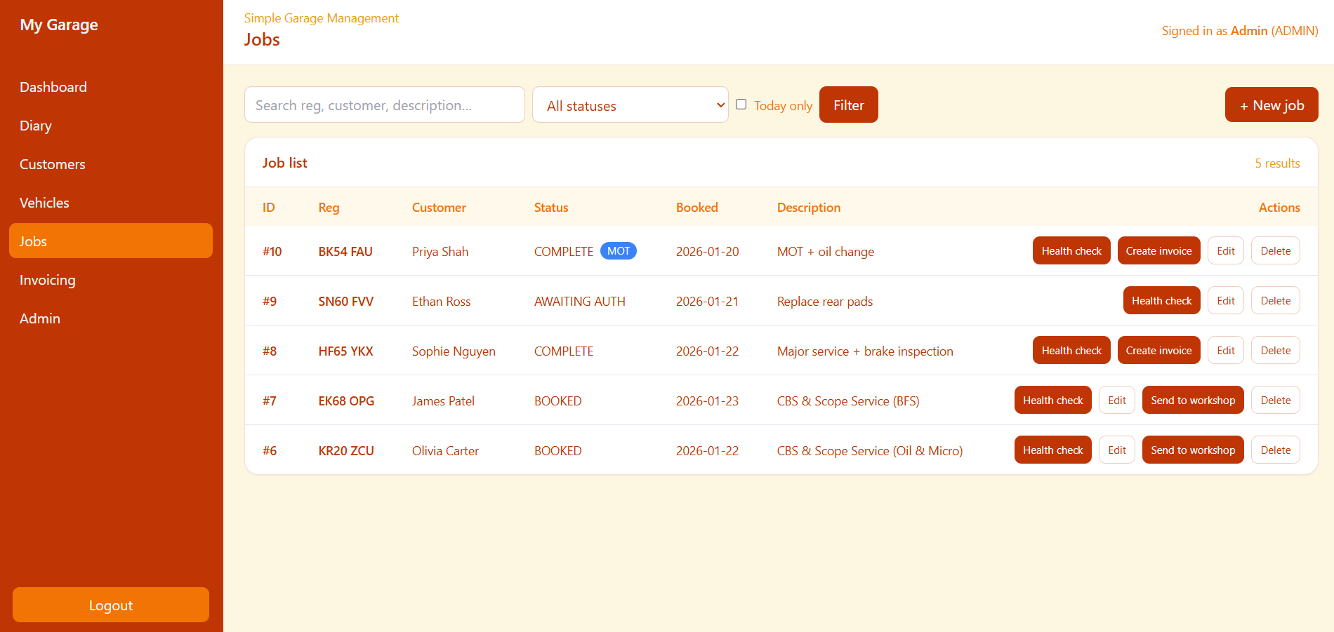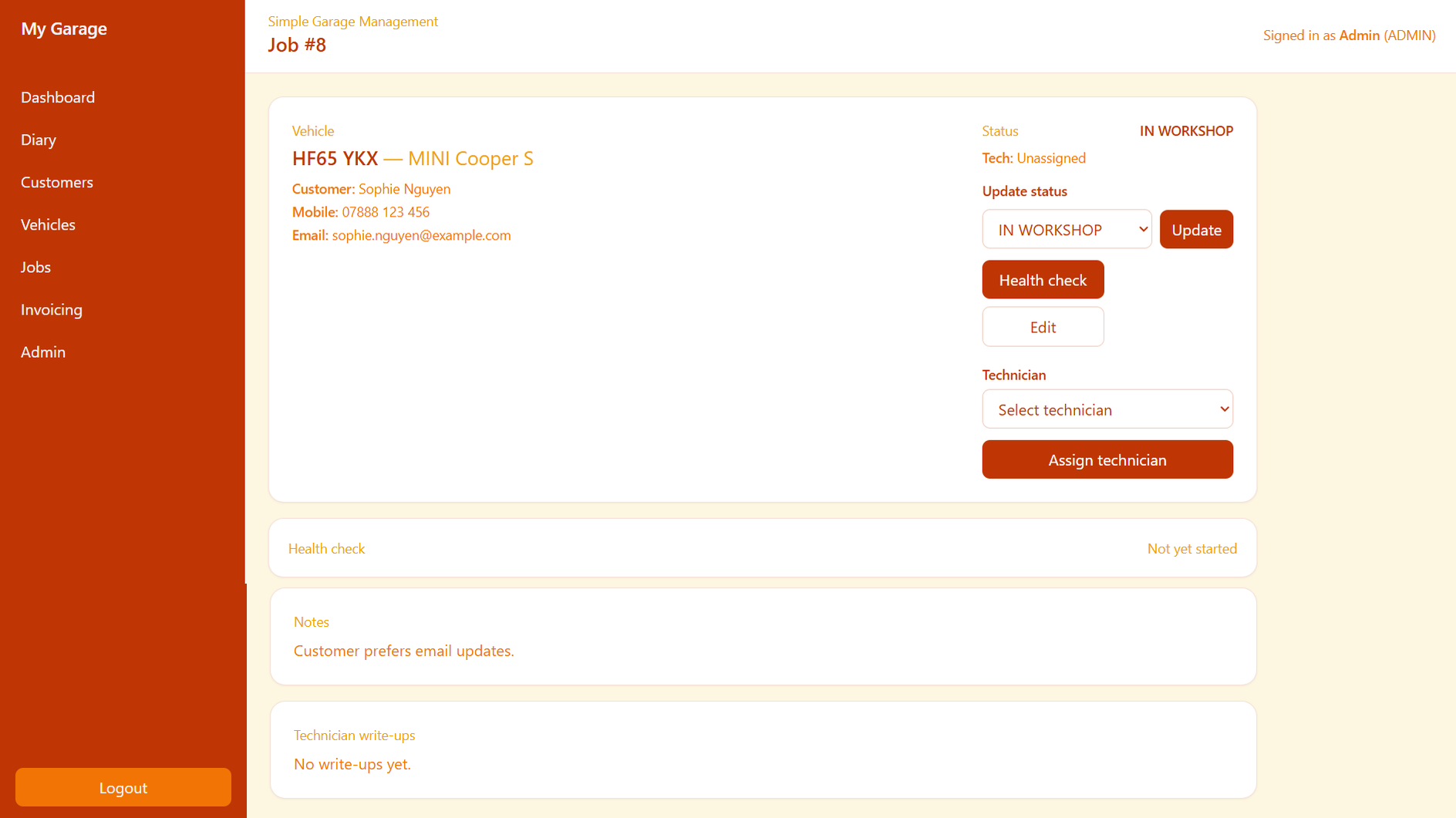 Switch between advisor and technician views to see how each role works. Each section shows what it does and the benefit to the workshop.